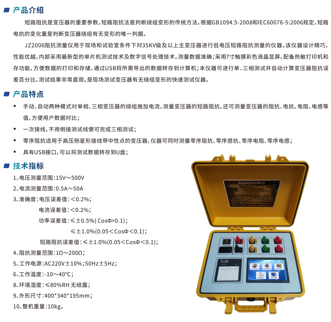 短路阻抗是變壓器的重要參數,短路阻抗法是判斷繞組變形的傳統方法,根據GB1094.5-2008和1EC60076-5:2006規定,短路 電抗的變化量是判斷變壓器繞組有無變形的唯一判據。