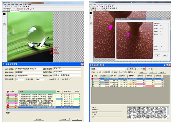 憎水等級判斷分為兩部分:主觀判斷和客觀判斷。用戶還可以利用“查詢”功能,對歷史判斷記錄進(jìn)行檢索、查詢和統(tǒng)計分析。