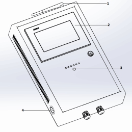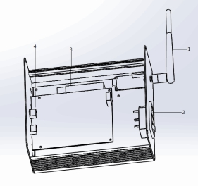 主機(jī)系統(tǒng)組成部件:1、改進(jìn)后433M無線通訊模塊;2、操作屏;3、人體紅外感應(yīng)裝置;4、語音播報裝置。