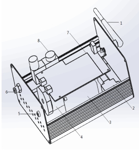 3、鋰電池模塊;4、多組分傳感器模塊;5、電源接口;6、進(jìn)樣口;7、信號采集處理模塊;8、電源模塊